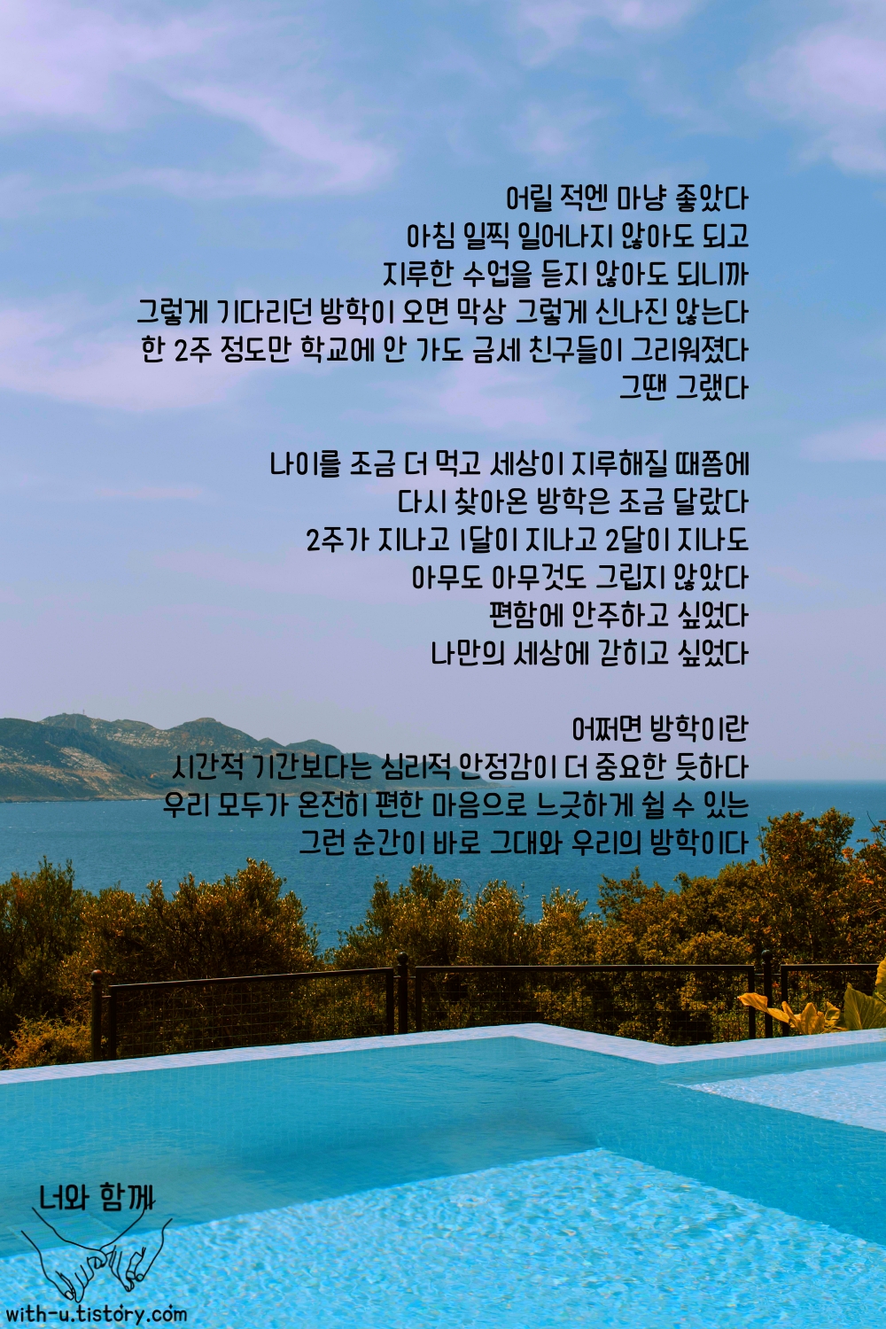 방학이라는 주제로 짧고 좋은 글귀를 가져왔습니다.