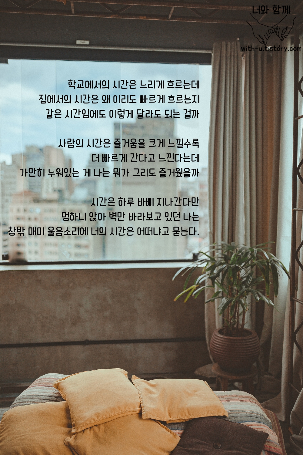창밖 매미 울음소리에 너의 시간은 어떠냐고 묻는다.