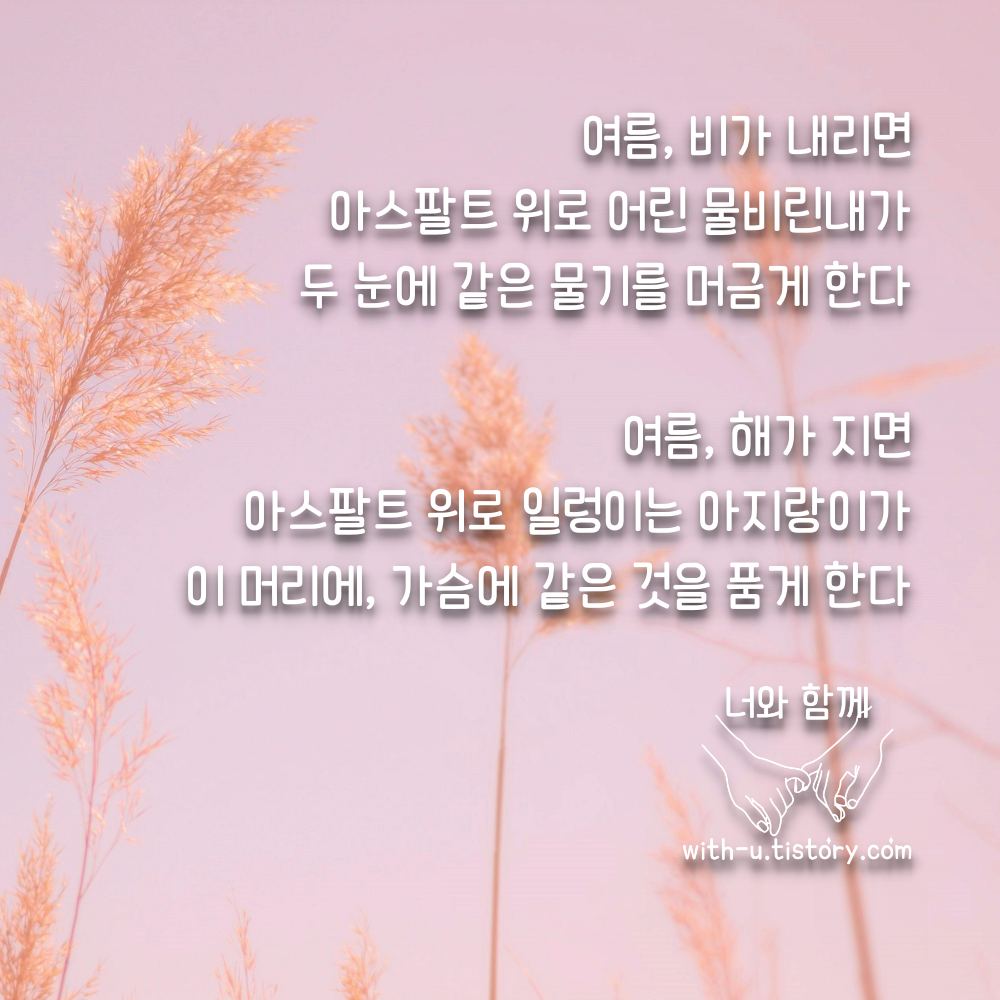 짧고 좋은 글귀를 보면서 여름에 대한 여러분의 생각도 댓글로 남겨주세요.